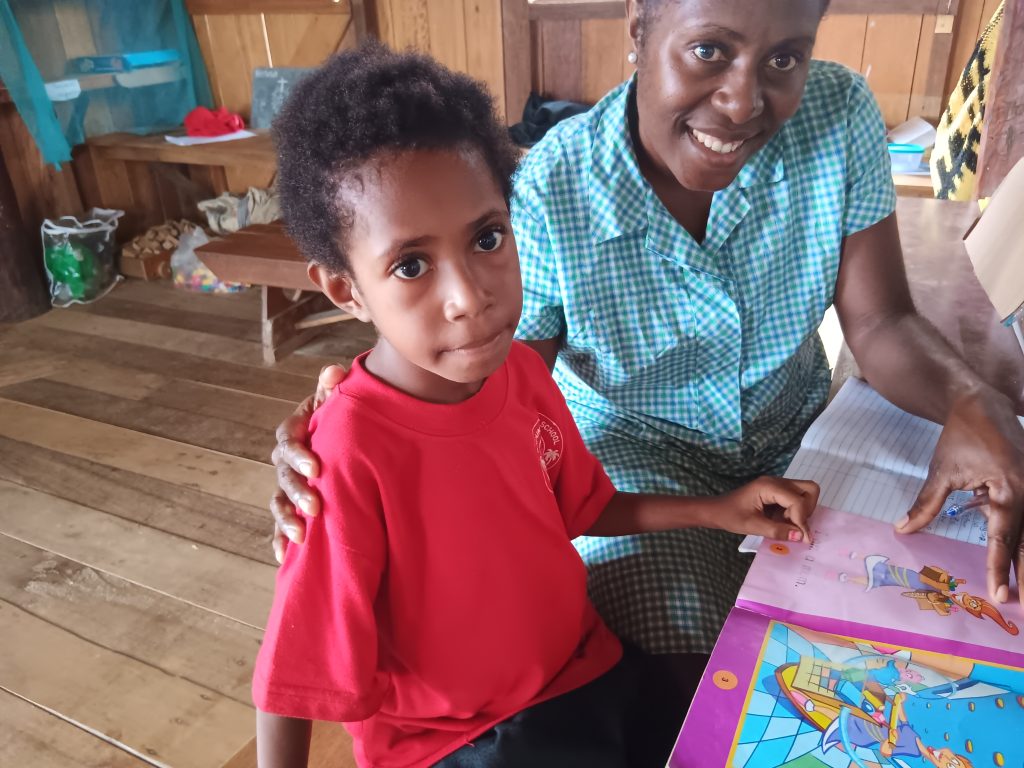 Most of the children come from the two villages on either side of Kapuna. They spent their first weeks learning Uniskript, a program that uses phonetic symbols and is taught in their local language. About ten years ago, some of our teachers and linguists, Robbie and Debbie Petterson, went to Hawaii to learn Uniskript and develop the symbols for the local languages. The children love Uniskript because it is so much fun and easy to understand, being in their own language. Then we bridge to English, where each week they learn a new letter, number, and nursery rhyme. We have decided that slow, steady, and fun is the way forward, and if the children grasp these foundational teachings, they will have a strong educational future. It is now just over halfway through the year, and these children are transformed beings.